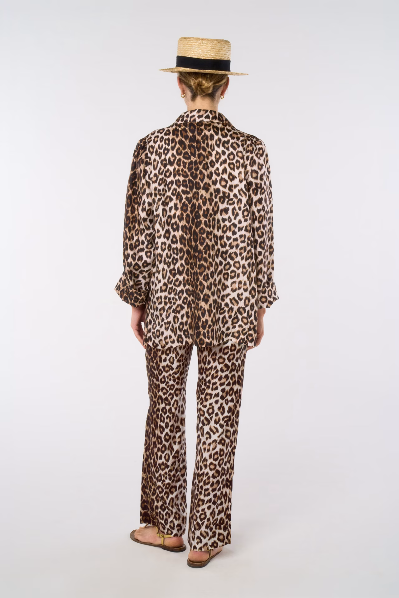 Loose-fitting jacket fully in silk twill, Panther silk twill piping details, two front pockets, and a mother-of-pearl button. Exclusive print “Polka Dots”.