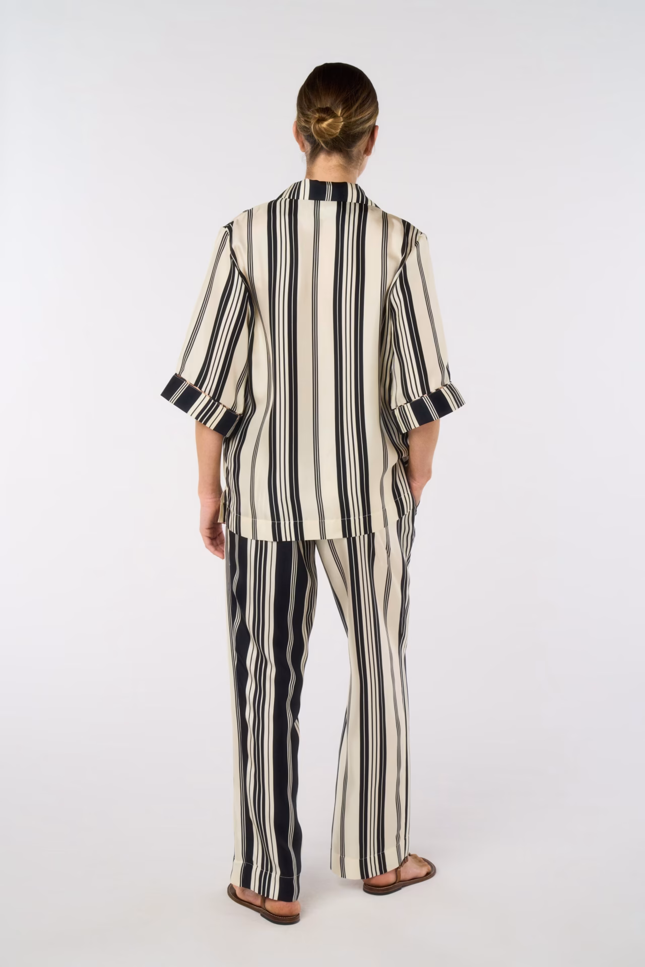 Hawaiian short-sleeved shirt fully in silk twill, with chest pocket & Panther piping on the bottom of sleeves, mother-of-pearl buttons. Exclusive print “Mattress Stripes”.