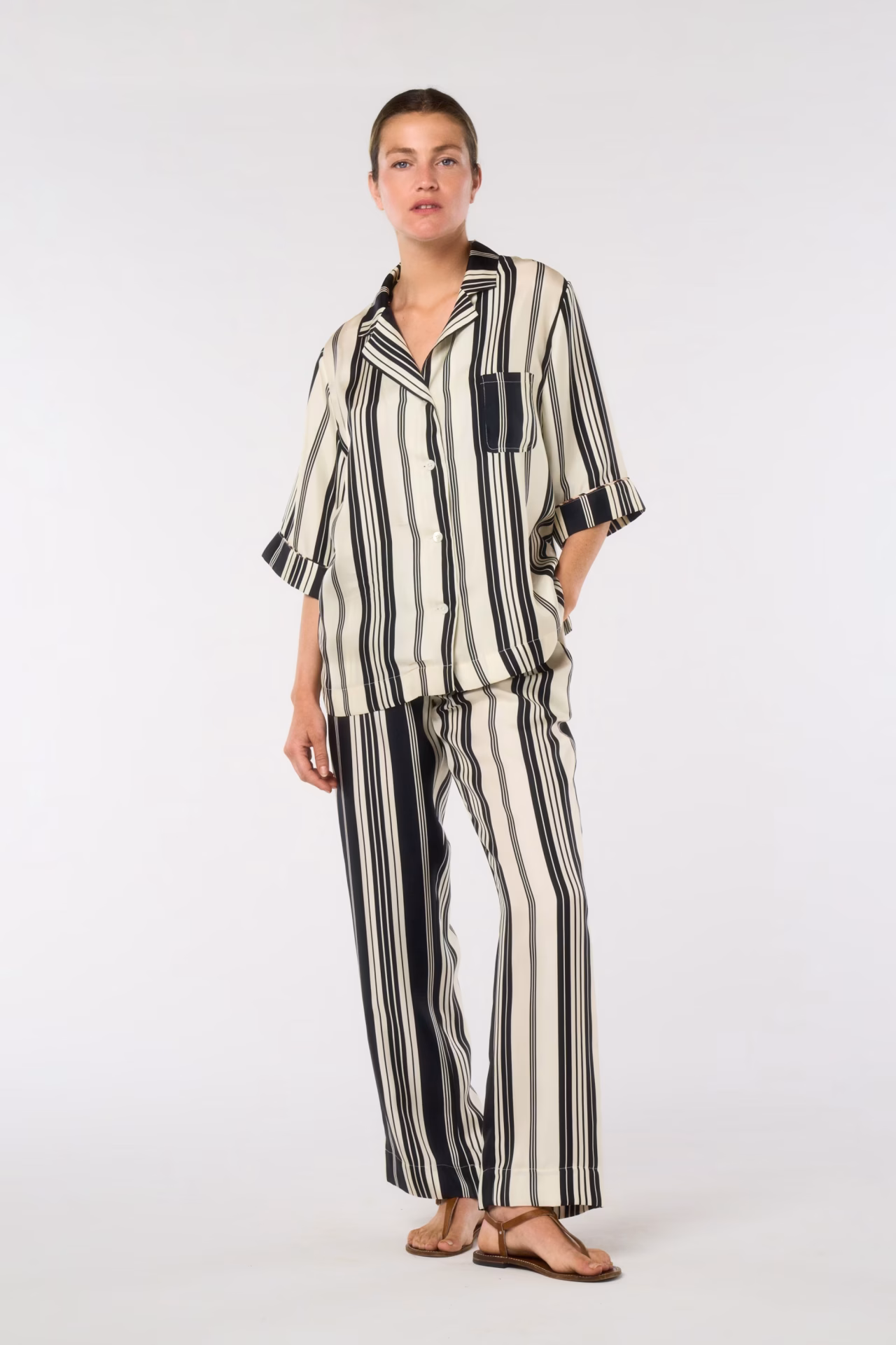 HAWAI Shirt – Black ecru Mattress Stripes