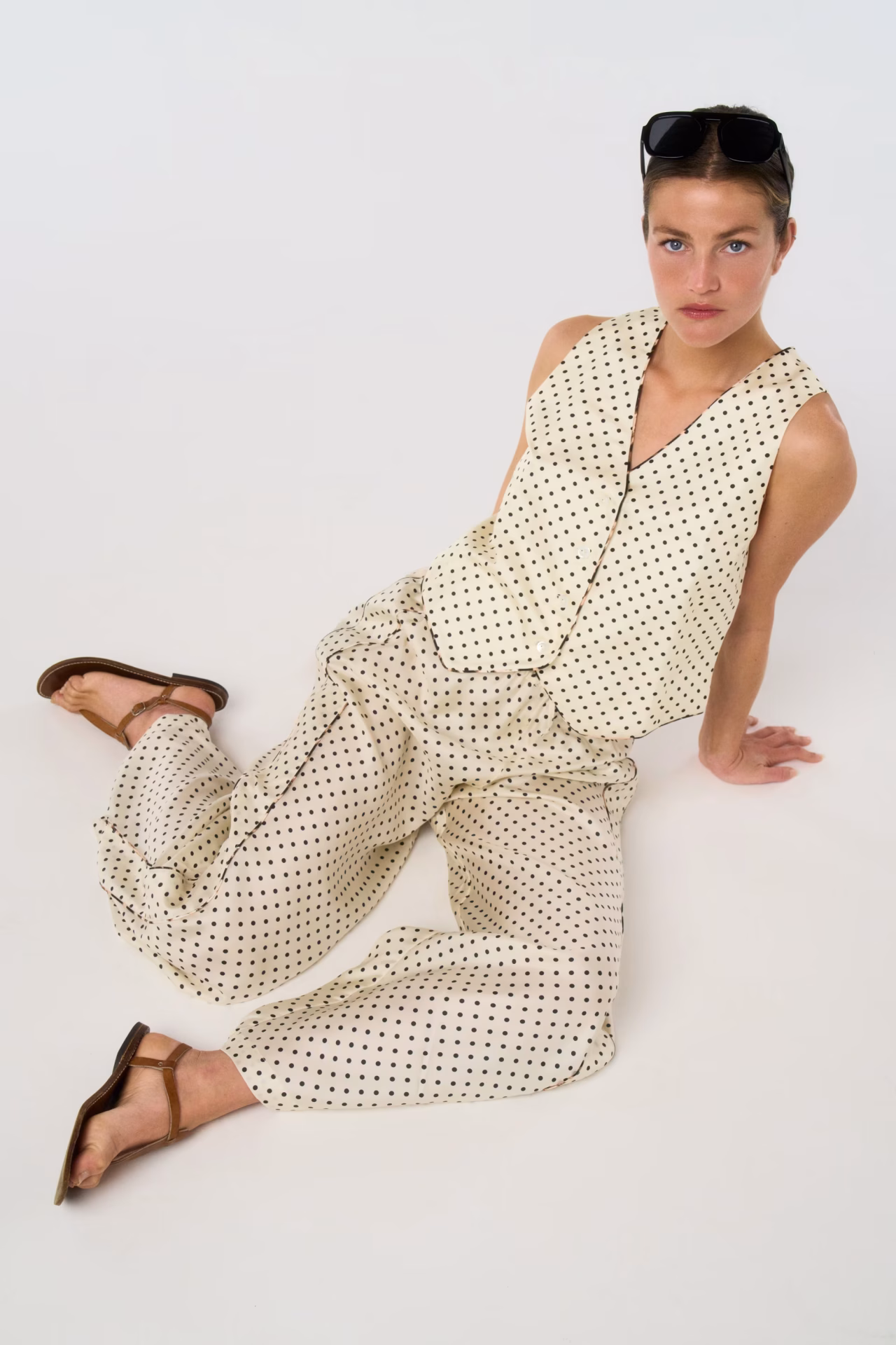SERVEUSE Vest – Black ecru Polka Dots