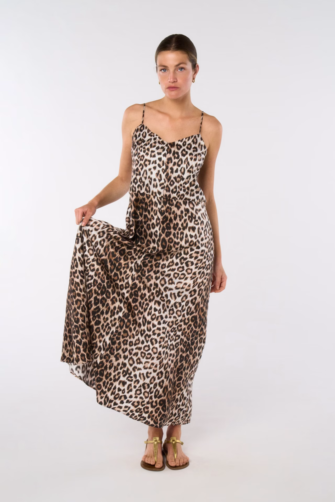 Robe midi à plastron en twill de soie, complètement boutonnée, manches longues et larges poignets boutonnés, fentes sur les côtés, boutons en nacre. Imprimé exclusif “Rayure Matelas” en deux coloris.